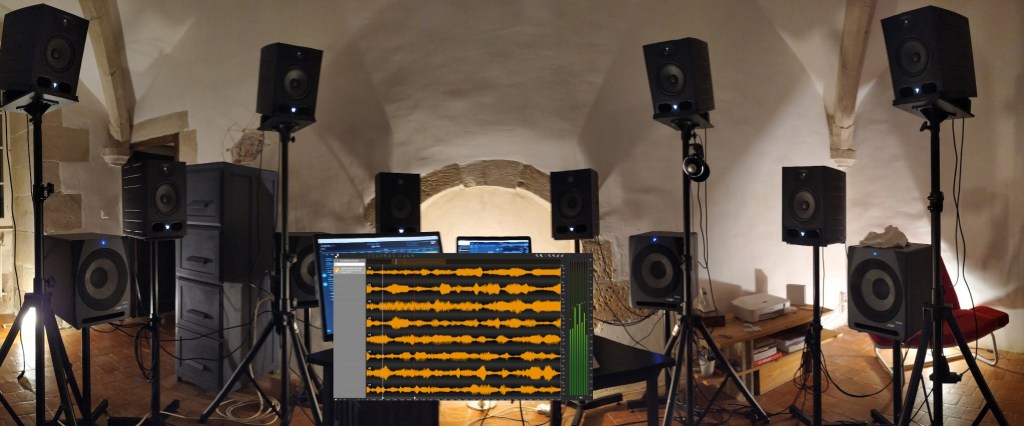 Dans une composition multicanale, la situation des canaux dans l’espace volumétrique faisant sens, le compositeur est souvent confronté à des choix cornéliens face à la complexité et surtout à la diversité des dispositifs existants. Comment adapter une œuvre conçue pour un dôme à un dispositif style “forêt primaire“ ? Et vice-versa …