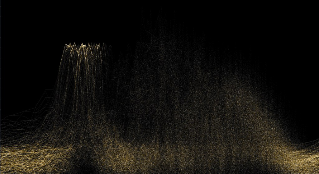 Le 3ème âge [1] de ce processus – plus que jamais volumique – s’oriente sur la conception d’espaces dits “forêts primaires” à contrario des formats Ambisonics et Atmos [2] car heureusement l’espace de nos vies est infiniment plus vaste et beaucoup moins normalisé. Les formations et vibrations des sons dans l’air/espace méritent beaucoup mieux que ces réductions extrêmement limitatives quant à la circulation et à la situation des masses sonores spatiales.